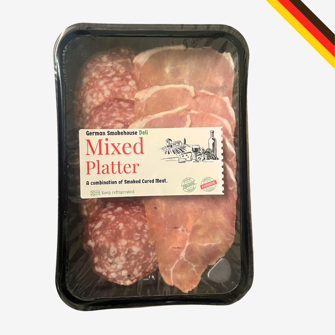 Mix of cured meats like salami and Coppa ham /beef carpaccio